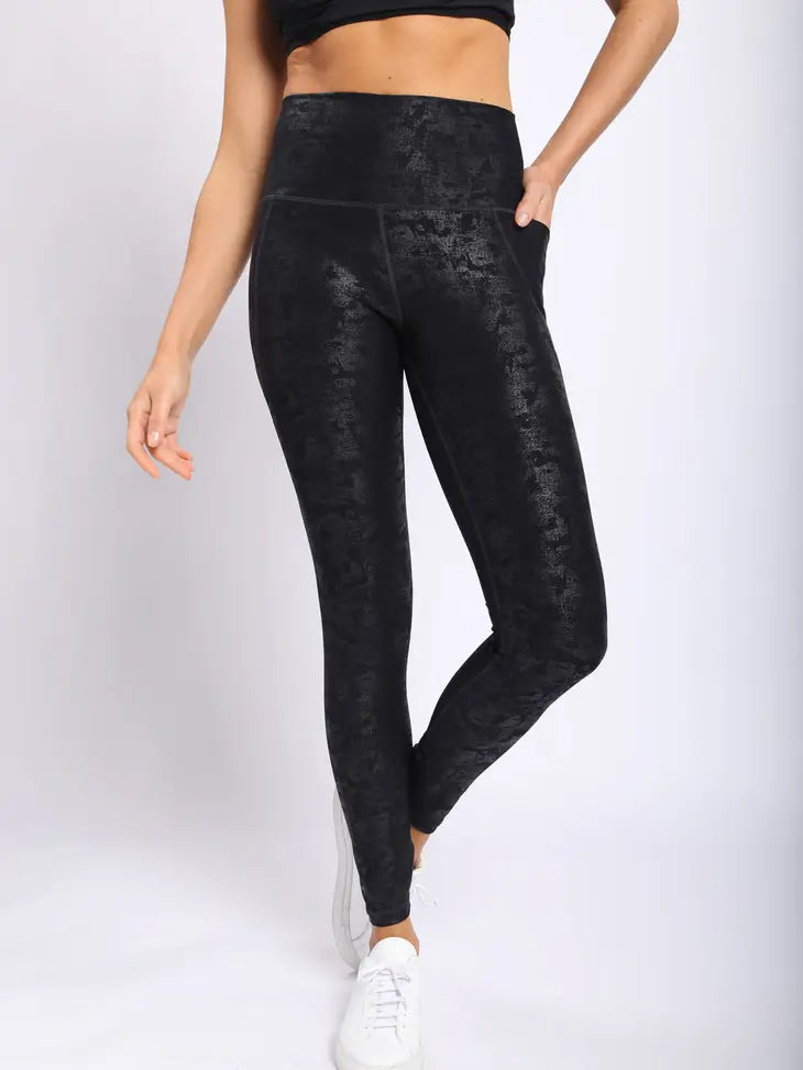Metallic Foil Highwaisted Leggings With Side Pockets