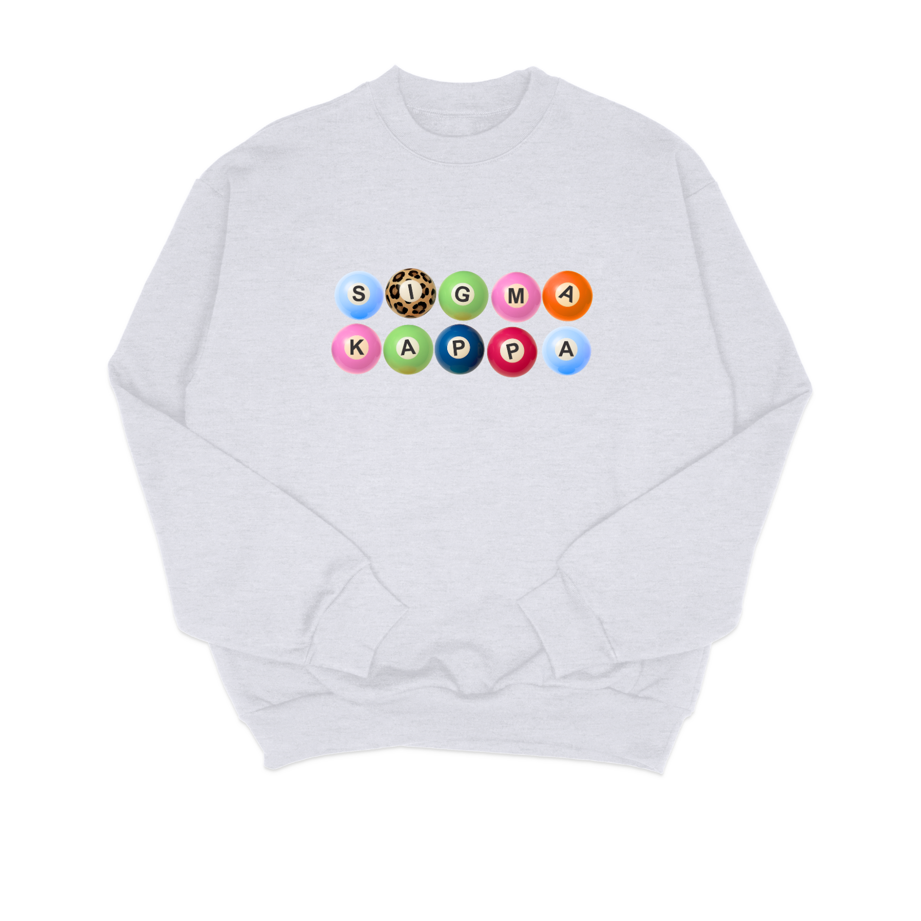 Each letter of your sorority is styled like a vibrant, playful pool ball (yes, including our signature leopard print ones), printed on a cozy heather grey unisex sweatshirt that’s made for matching moments and casual slayage. Whether you’re heading to chapter, coffee runs, or just vibing in the common room, this crewneck has you covered.