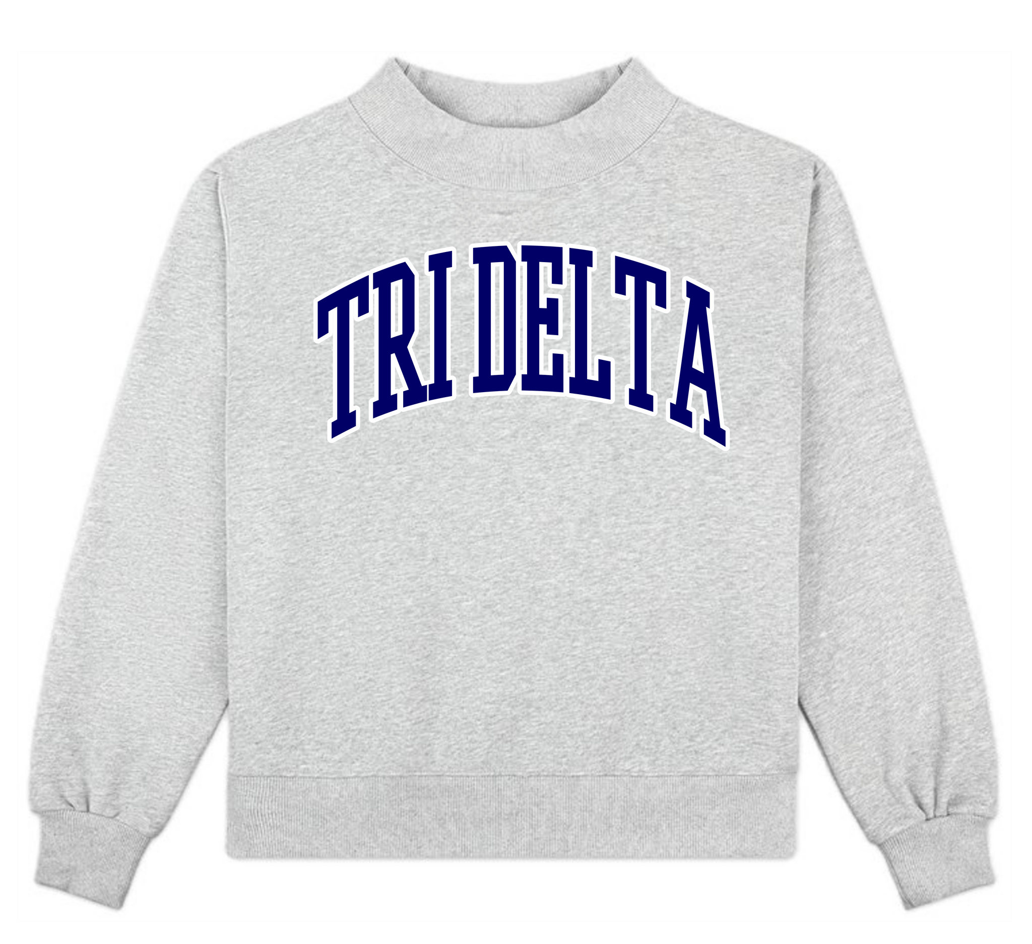 Your new go-to just dropped. The Campus Mock Neck is that sweatshirt—relaxed, collegiate, and cool without trying too hard. With its bold embroidered sorority nickname and structured neckline, this crew is made for walking to class, lounging at the house, or hyping your sisters before chapter. It’s giving oversized, lived-in, and totally iconic energy.