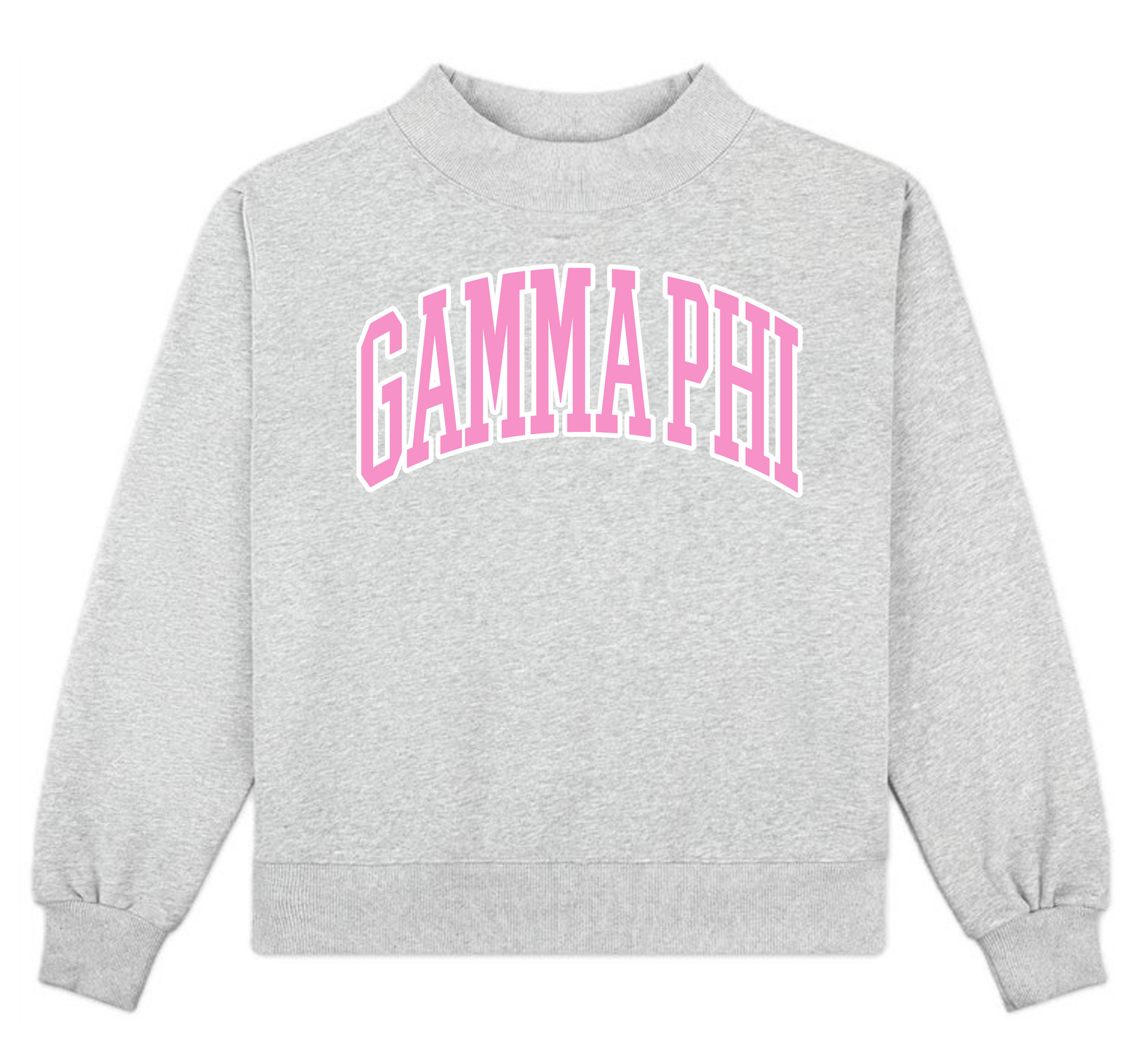 Your new go-to just dropped. The Campus Mock Neck is that sweatshirt—relaxed, collegiate, and cool without trying too hard. With its bold embroidered sorority nickname and structured neckline, this crew is made for walking to class, lounging at the house, or hyping your sisters before chapter. It’s giving oversized, lived-in, and totally iconic energy.