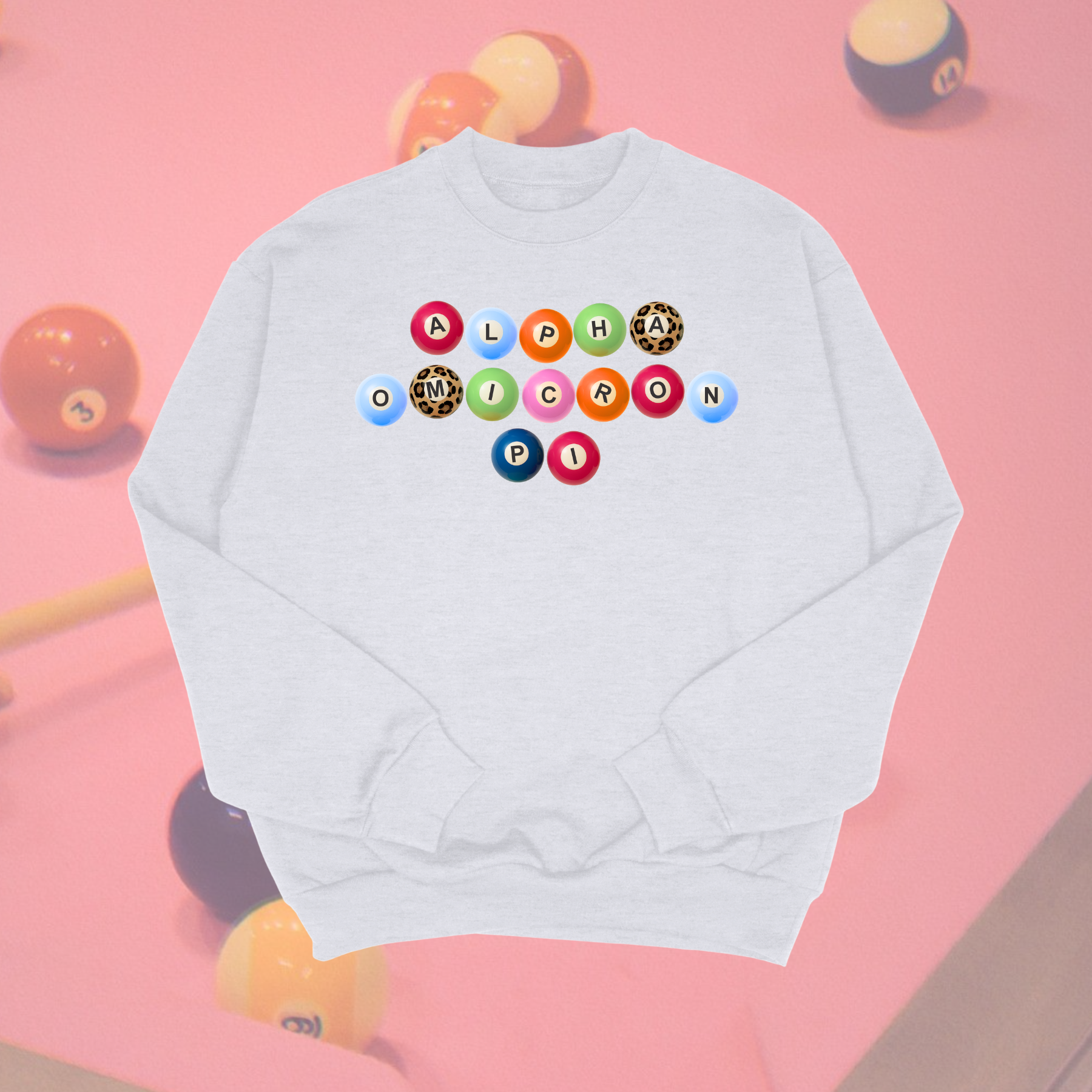 Each letter of your sorority is styled like a vibrant, playful pool ball (yes, including our signature leopard print ones), printed on a cozy heather grey unisex sweatshirt that’s made for matching moments and casual slayage. Whether you’re heading to chapter, coffee runs, or just vibing in the common room, this crewneck has you covered.