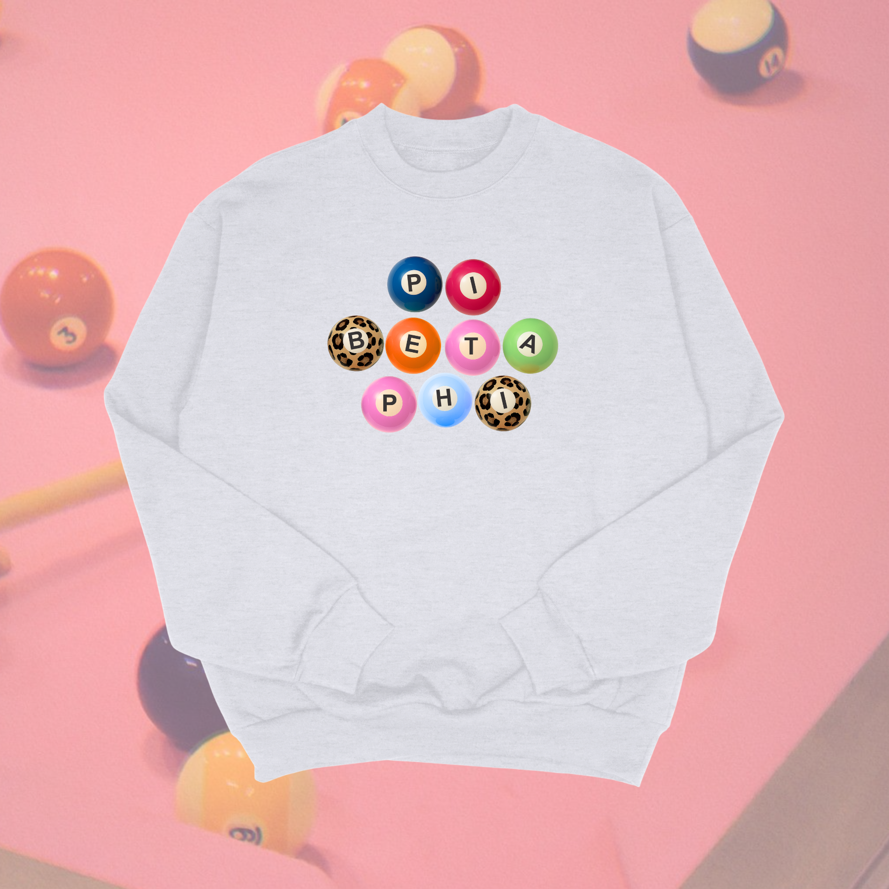 Each letter of your sorority is styled like a vibrant, playful pool ball (yes, including our signature leopard print ones), printed on a cozy heather grey unisex sweatshirt that’s made for matching moments and casual slayage. Whether you’re heading to chapter, coffee runs, or just vibing in the common room, this crewneck has you covered.