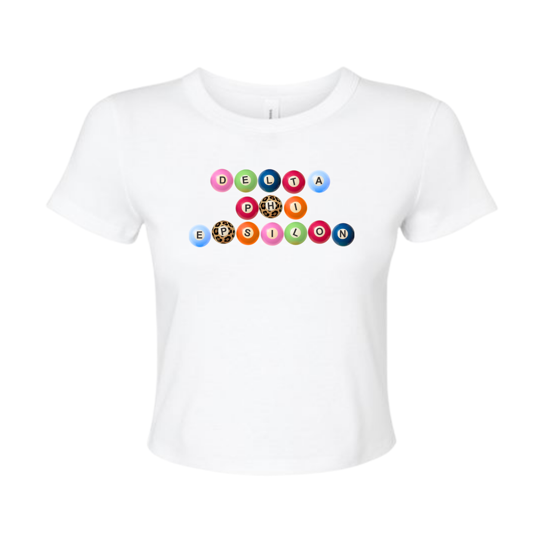 Each letter of your sorority is styled like a playful, vibrant pool ball (yes, including our signature leopard print ones), printed on a super-soft cropped tee made for casual hangs and cute matching moments. Whether you’re styling it with high-waisted denim, rocking it at chapter, or pairing it with joggers for coffee runs, this tee is giving effortless slay.